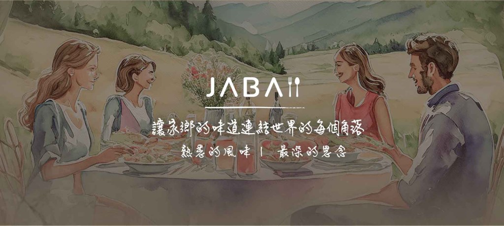 - JABA,源自閩南話「吃飽」。餐桌上一道熟悉的家鄉料理,不僅僅是一道菜,更是一段回憶、一份牽掛。透過精心挑選的食材與傳統工藝,JABA力求將最道地的口味呈現在您的餐桌上。讓每個在異鄉的日子,重溫那熟悉的家鄉風味,都因一口熟悉的滋味而變得溫暖。JABA,滿足的不僅是胃,更是那份深藏心中的鄉愁。
